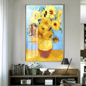 • 晶瓷画世界名画梵高向日葵现代简约入户玄关客厅壁画装饰画轻奢大气竖版过道美式挂画