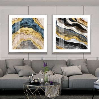 • 现代简约美式后现代轻奢抽象艺术水晶大理石纹装饰画金色餐厅挂画