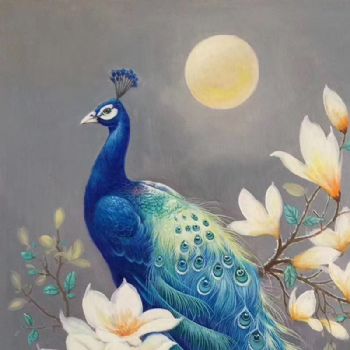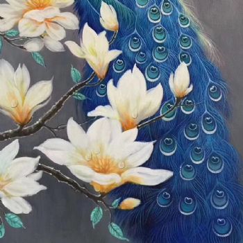 手绘油画中式油画富贵孔雀