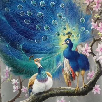 手绘油画孔雀油画