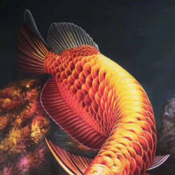 • 手绘精品油画金龙鱼 龙鱼是中华传统招财之物 它能为你的事业招财进宝