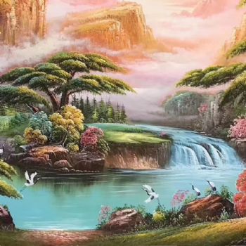 首页 --> 艺术商城 --> 油画风景画 --> 山水画聚宝盆风水画 --> 字画美官方旗舰店 --> 中式油画 风水油画 青松 木屋喻人丁兴旺 聚宝盆财富 白鹤象征长寿 一幅有深刻意义的优秀作品