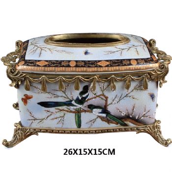• 奢华纸巾盒抽纸盒 餐巾纸抽盒新中式工艺品陶瓷配铜