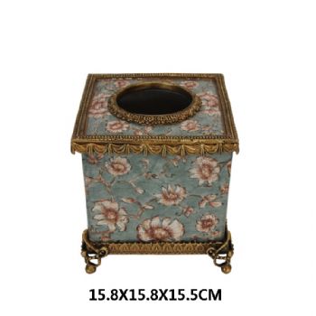 • 四方纸巾盒陶瓷配铜中式工艺品家用客厅新中式
