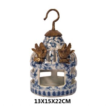 • 鸟笼摆件欧式流苏装饰陶瓷配铜工艺品