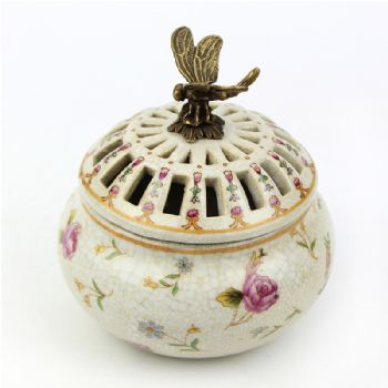 • 欧式镂空香薰炉工艺品 彩绘陶瓷镶铜檀香炉摆件家居饰品桌面软装