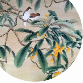 枇杷树下花鸟国画