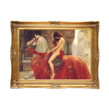 • 欧式手绘油画人物马背上的Godiva夫人挂画客厅壁画玄关装饰画定制