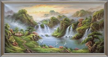 首页 --> 艺术商城 --> 油画风景画 --> 山水画聚宝盆风水画 --> 字画美官方旗舰店 --> 精品油画 山水风景画 中式风水油画 有人家 有白鹤 聚宝盘 纯手绘油画 实木外框