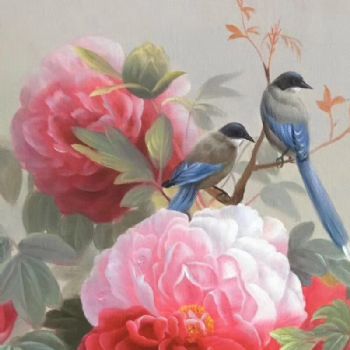 • 手绘富贵牡丹又飞鸟寓意夫妻白头到老实力画家力作适合家庭挂画客厅油画