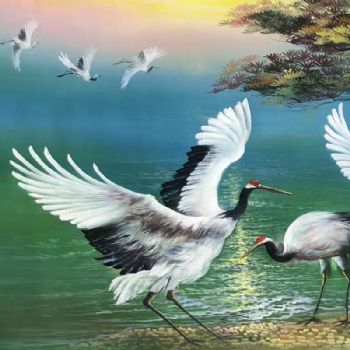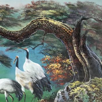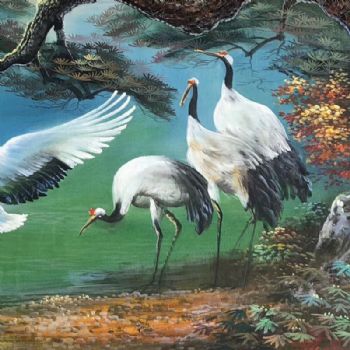 鹤寿千年手绘油画