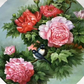 • 中国牡丹富贵之花吉祥之花纯手绘油画作品特别适合中式家庭实木圆形框
