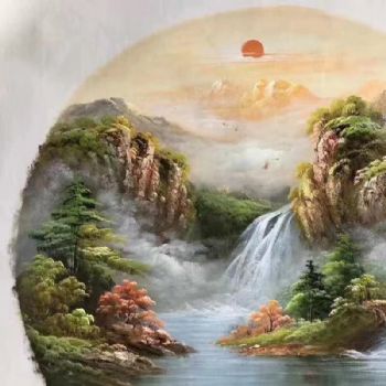 首页 --> 艺术商城 --> 油画风景画 --> 山水画聚宝盆风水画 --> 字画美官方旗舰店 --> 手绘风水油画新中式油画客厅办公室挂画实木圆形外框酒店装饰画