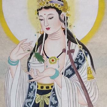• 精品纯手绘观世音菩萨画像观音大士像工笔画佛像佛堂家用供奉佛教挂画