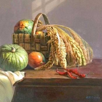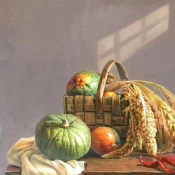 首页 --> 艺术商城 --> 油画静物 --> 南瓜静物写实油画 --> 字画美官方旗舰店 --> 新中式写实油画静物作品画南瓜竹篮稻穗精品写实油画实木画框