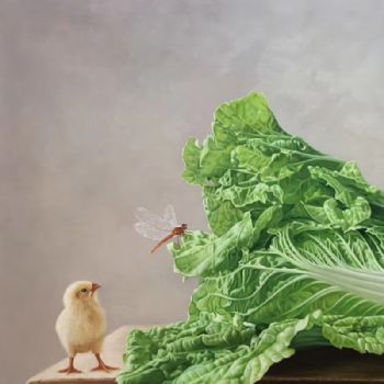 手绘写实油画白菜