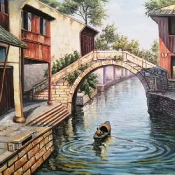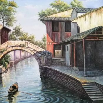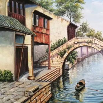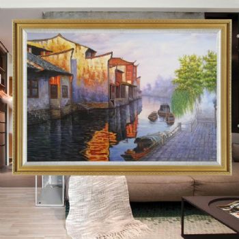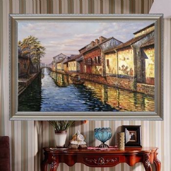 首页 --> 艺术商城 --> 油画风景画 --> 水乡风景油画 --> 字画美官方旗舰店 --> 手绘油画江南水乡写意风景油画小桥流水人家实木画框客厅走廊挂画