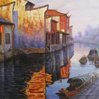 首页 --> 艺术商城 --> 油画风景画 --> 水乡风景油画 --> 字画美官方旗舰店 --> 夕阳西下小桥流水人家客厅走廊挂画江南水乡写意风景油画手绘油画