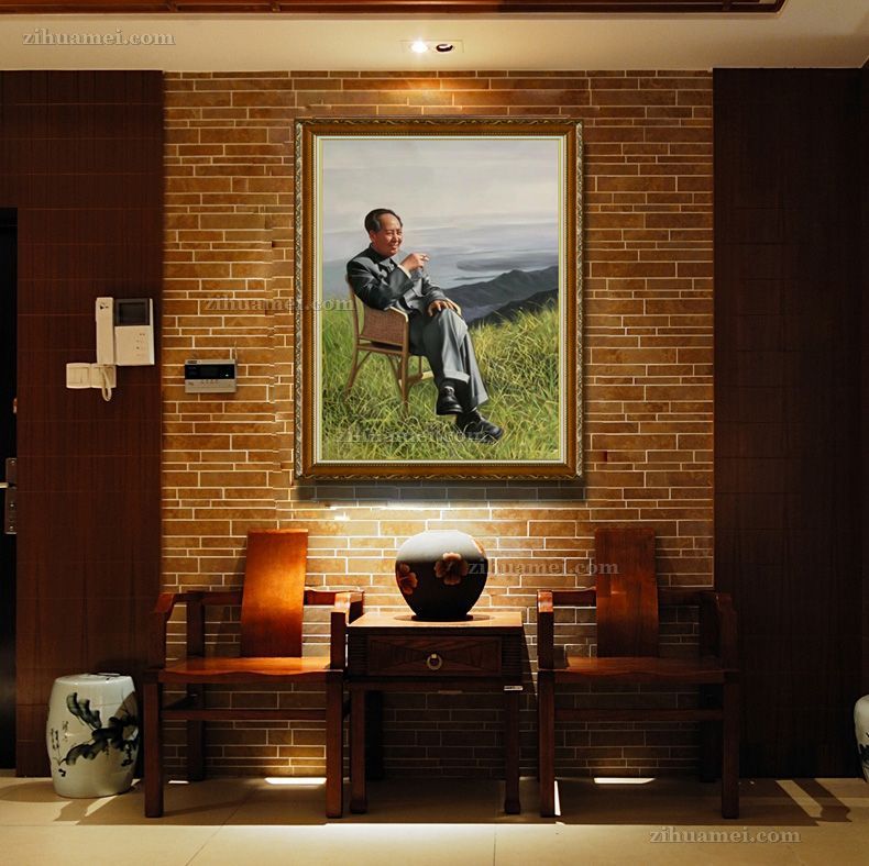 • 稳坐江山精品写实油画一代伟人人物肖像油画毛泽东同志中式人物画