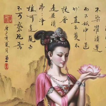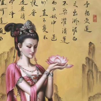 首页 --> 艺术商城 --> 油画人物 --> 中式人物 --> 字画美官方旗舰店 --> 作者周敦颐爱莲说诗词与美女人物手绘油画新中式油画美女手捧莲花