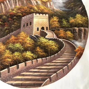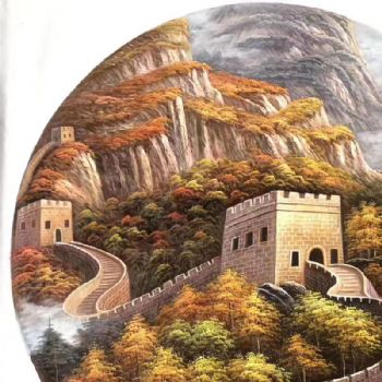 • 新中式油画长城油画风景写实油画圆形风格实木画框适合酒店挂画