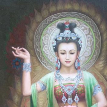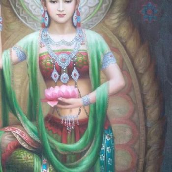 • 纯手绘敦煌飞天人物油画新中式油画敦煌壁画菩萨图写实油画