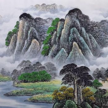 首页 --> 艺术商城 --> 国画山水画 --> 写意山水画 --> 字画美官方旗舰店 --> 新中式山水画聚宝盆青绿小八尺国画纯手绘山水画传统风水国画接受个性提字