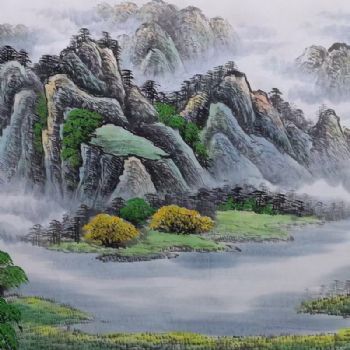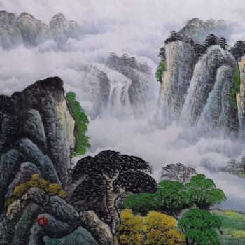 首页 --> 艺术商城 --> 国画山水画 --> 写意山水画 --> 字画美官方旗舰店 --> 纯手绘大型国画山水画青绿小八尺国画接新中式聚宝盆受个性提字山水画