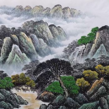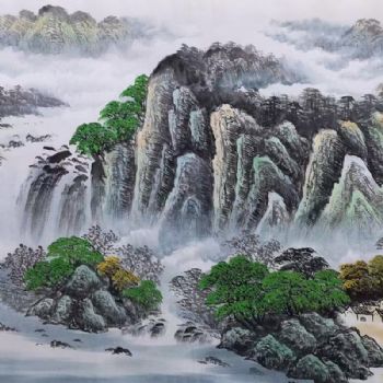 首页 --> 艺术商城 --> 国画山水画 --> 写意山水画 --> 字画美官方旗舰店 --> 高水平画师手纯山水国画新中式聚宝盆大型国画山水画青绿小八尺接受个性提字