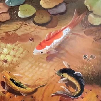 • 写意油画动物九鱼图