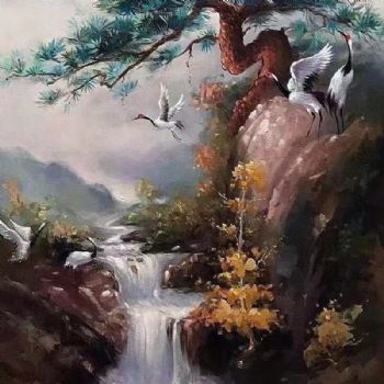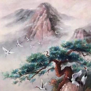 • 手绘写意油画松鹤延年新中式油画适合客厅祝寿送礼油画
