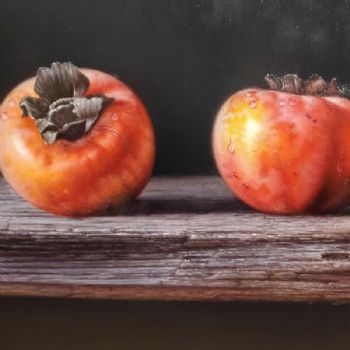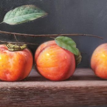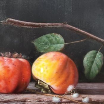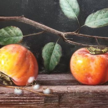 • 新中式实力画家写实油画作品事事如意静物手绘油画柿子图