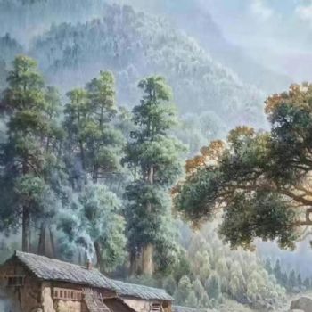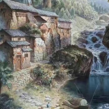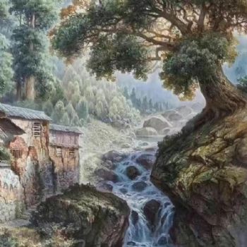 首页 --> 艺术商城 --> 油画风景画 --> 村庄风景油画 --> 字画美官方旗舰店 --> 精品原创写实风景油画山间流水古树人家极富艺术价收藏值手绘油画