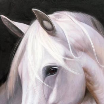 • 写实油画动物白马马头油画实力画师超写实油画寓意一马当先领导地位
