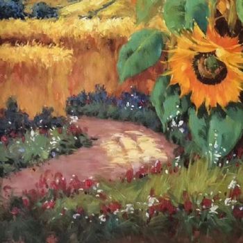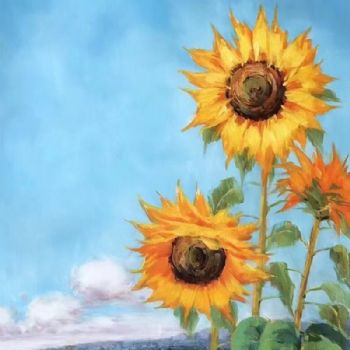 • 纯手绘油画大写意向日葵风景油画颜色绚丽多姿适合走廊客厅挂画