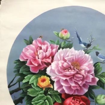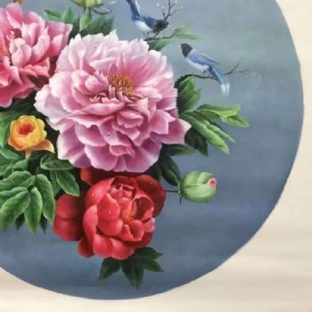 首页 --> 艺术商城 --> 油画花卉 --> 牡丹花 --> 字画美官方旗舰店 --> 新中式牡丹油画蝶恋花纯手绘油画实木圆形外框客厅花卉油画挂画