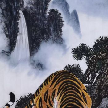 • 猛虎虎威手绘国画下山虎高品质工笔国画适合玄关的动物国画