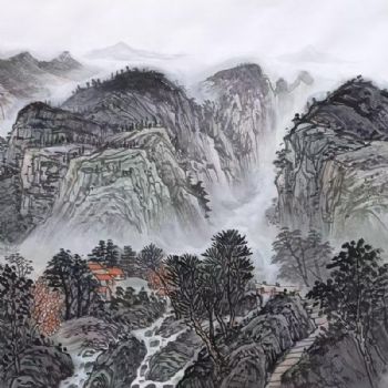 首页 --> 艺术商城 --> 国画山水画 --> 水墨山水画 --> 字画美官方旗舰店 --> 新中式纯手绘水墨画山里有人家小六尺国画黑白素色实木画框水墨画
