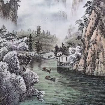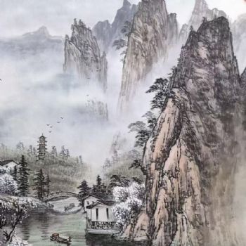 首页 --> 艺术商城 --> 国画山水画 --> 写意山水画 --> 字画美官方旗舰店 --> 风水水墨山水国画六尺斗方纯手绘写意国画新中式山水画实木画框