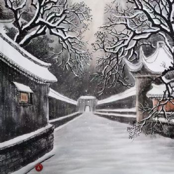 首页 --> 艺术商城 --> 国画山水画 --> 工笔山水画 --> 字画美官方旗舰店 --> 精品水墨画雪中的大户人家胡同精品大六尺纯手绘工笔风景画实木画框
