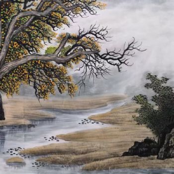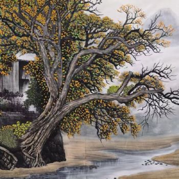 首页 --> 艺术商城 --> 国画山水画 --> 工笔山水画 --> 字画美官方旗舰店 --> 纯手绘风景国画溪水边的木屋人家古色古香老树古滕实木画框水墨画