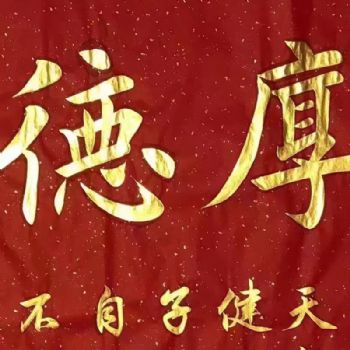 • 厚德载物当代青年书法艺术书法家董泽柱书法作品金色墨笔书法作品