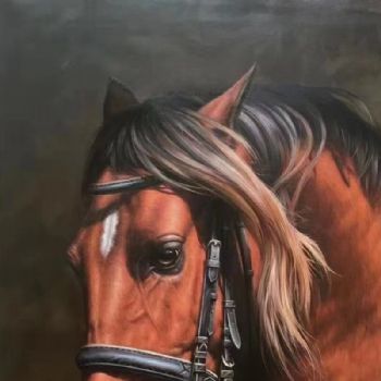 • 写实手绘油画马头俊马图动物油画精品手绘油画适合领导办公室油画