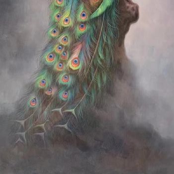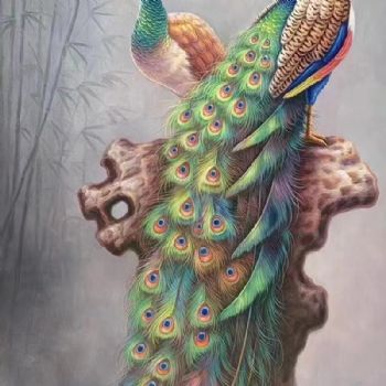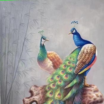 • 新中式动物油画纯手绘孔雀油画实力画家适合玄关的装饰油画