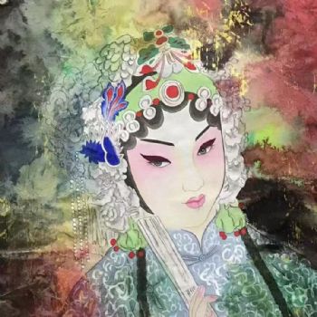 • 纯手绘精品四尺斗方戏曲人物国画彩墨水彩国画