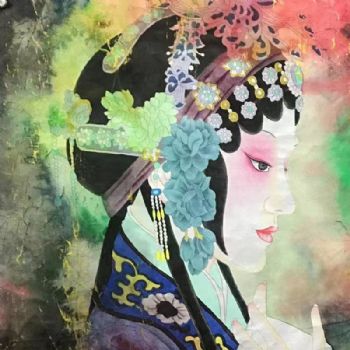 • 新中式纯手绘精品四尺斗方戏曲人物国画彩墨水彩国画