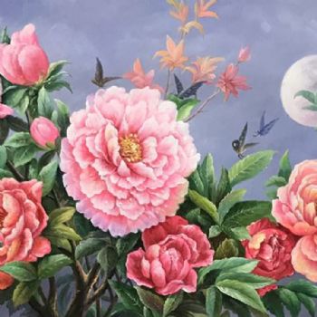 首页 --> 艺术商城 --> 油画花卉 --> 牡丹花 --> 字画美官方旗舰店 --> 纯手绘高品质花鸟油画花好月圆适合客厅新中式风格沙发背景墙油画