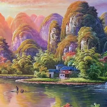 • 中式油画纯手绘山水风景油画桂林山水画中式风水油画