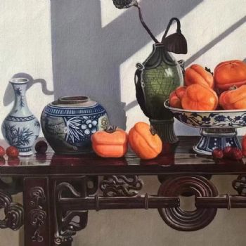 首页 --> 艺术商城 --> 油画静物 --> 柿子静物写实油画 --> 字画美官方旗舰店 --> 静物写实油画中式传统家具摆件纯手绘油画适合新中式风格客厅挂画