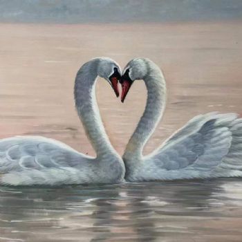 • 纯手绘动物油画天鹅爱心图写实油画适合卧室床头挂画